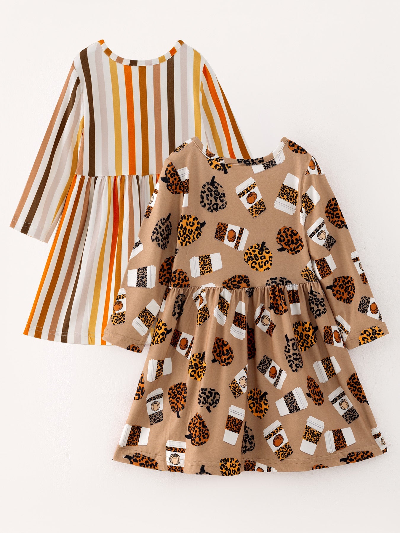 Fall Thanksgiving Day Set Of 2 Pcs In One Package Girls Leopard Print Dress